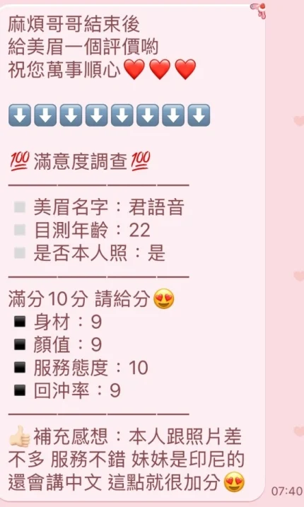 4️⃣見面後確認妹妹滿意後 將現金交給妹妹,即可開始享受服務。