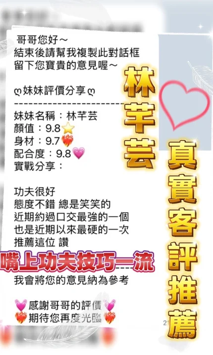 4️⃣見面後確認妹妹滿意後 將現金交給妹妹,即可開始享受服務。