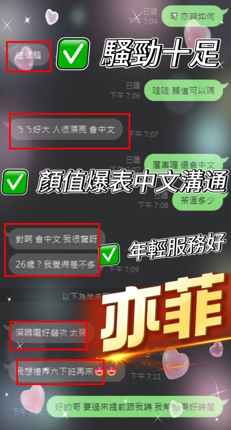 4️⃣見面後確認妹妹滿意後 將現金交給妹妹,即可開始享受服務。