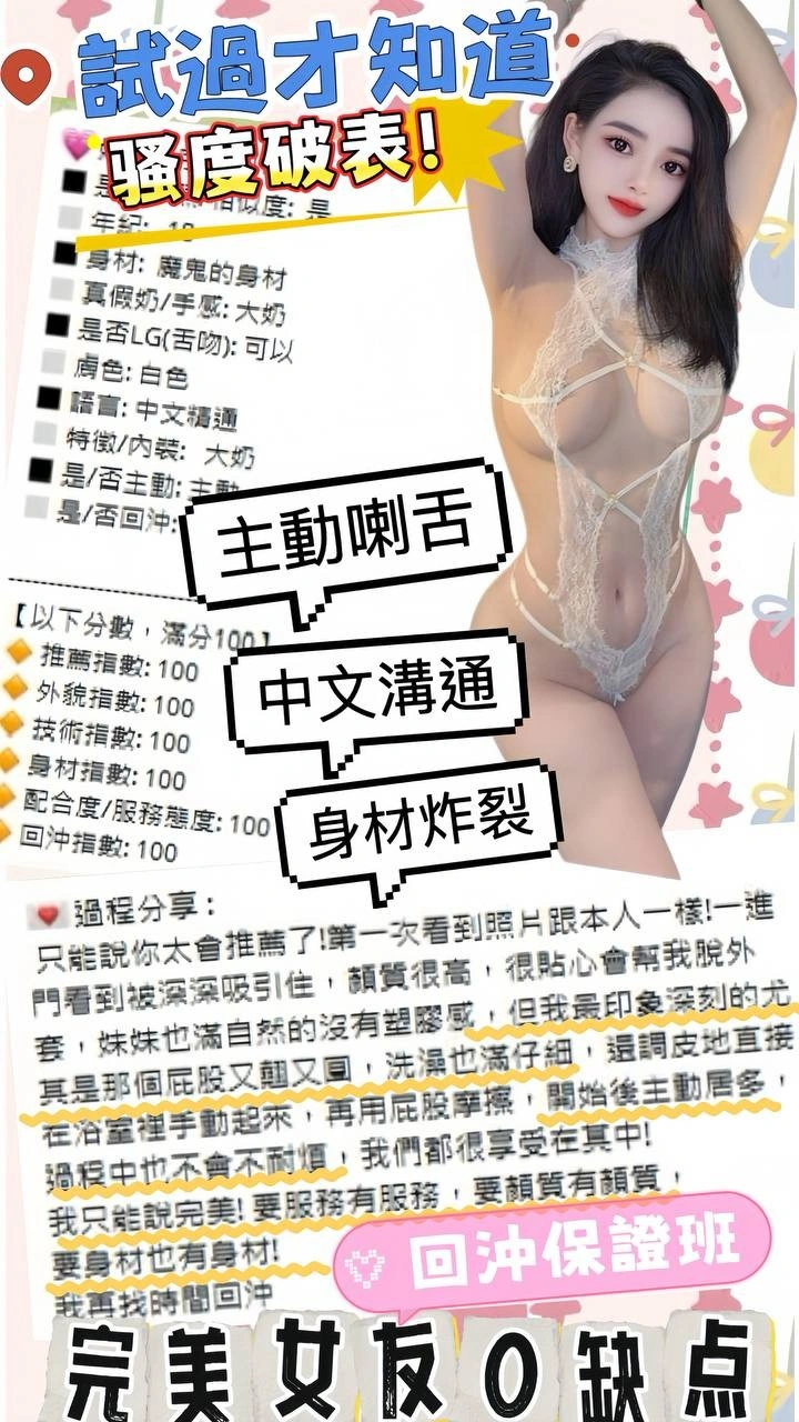 加價項目 : 2S+500/顏射+500/口爆+500/自慰秀+500/攝影+1000