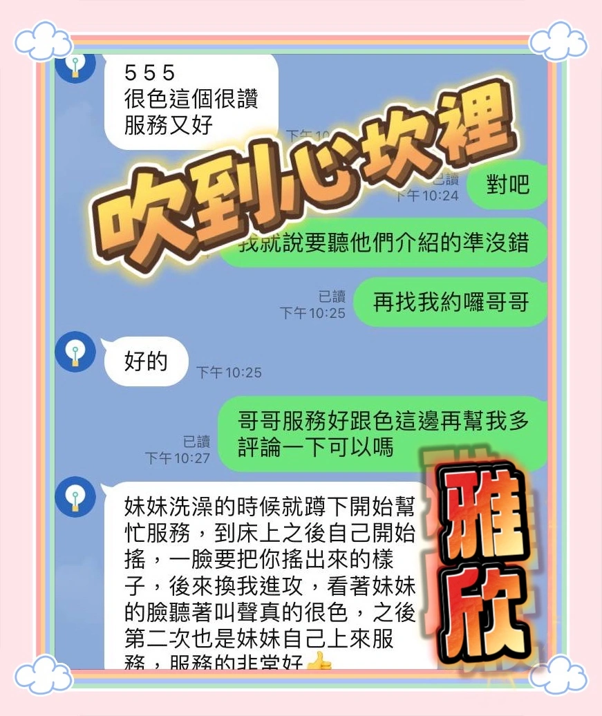 4️⃣見面後確認妹妹滿意後 將現金交給妹妹,即可開始享受服務。
