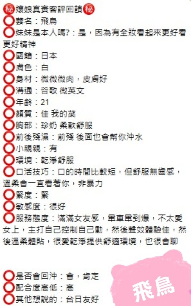 4️⃣見面後確認妹妹滿意後 將現金交給妹妹,即可開始享受服務。