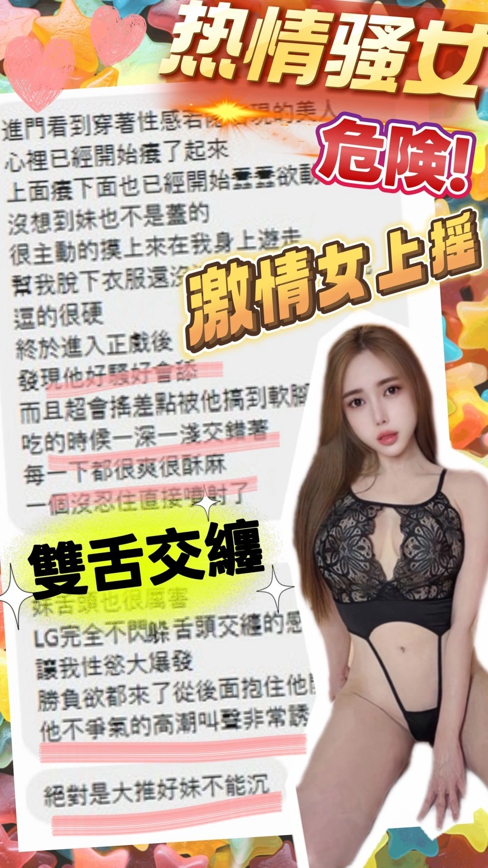 可配合 :奶砲,毒龍,按摩,69,陪洗,共浴,殘廢澡,LG(舌吻)依氣氛衛生而定,可親嘴,無套吹,口爆,品鮑,舔蛋,顏射,玩具(按摩棒),玩具(跳蛋),情趣用品(客自備),自慰秀,白人,中文溝通,快餐,2S,包夜