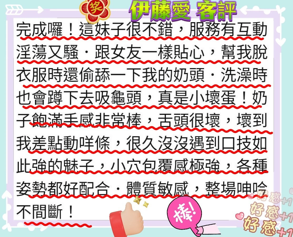 可配合 :69,殘廢澡,可親嘴,無套吹,口爆,吞精,品鮑,屁推,水床浴,變裝,玩具(按摩棒),玩具(跳蛋),情趣用品(客自備),自慰秀,2S