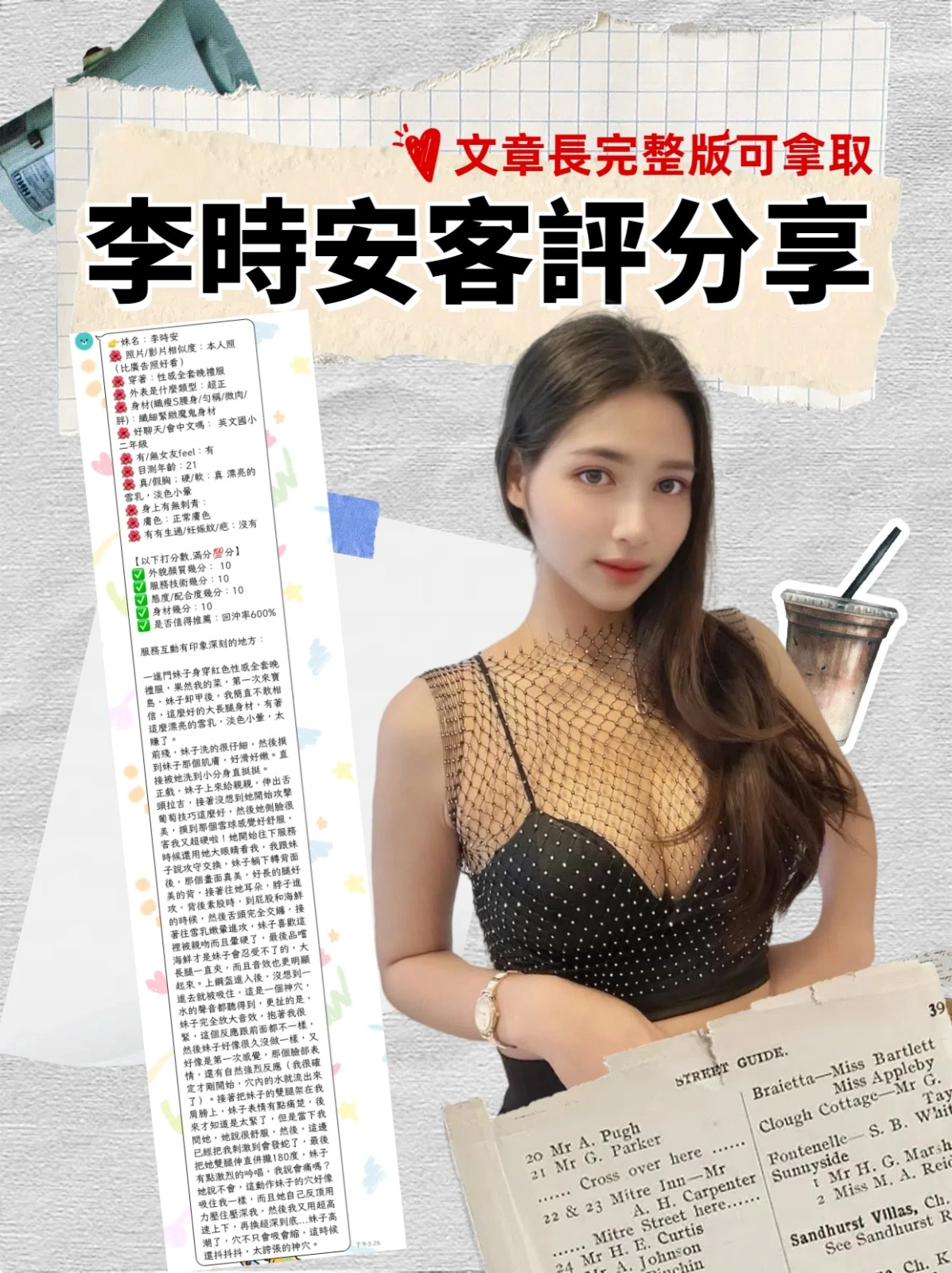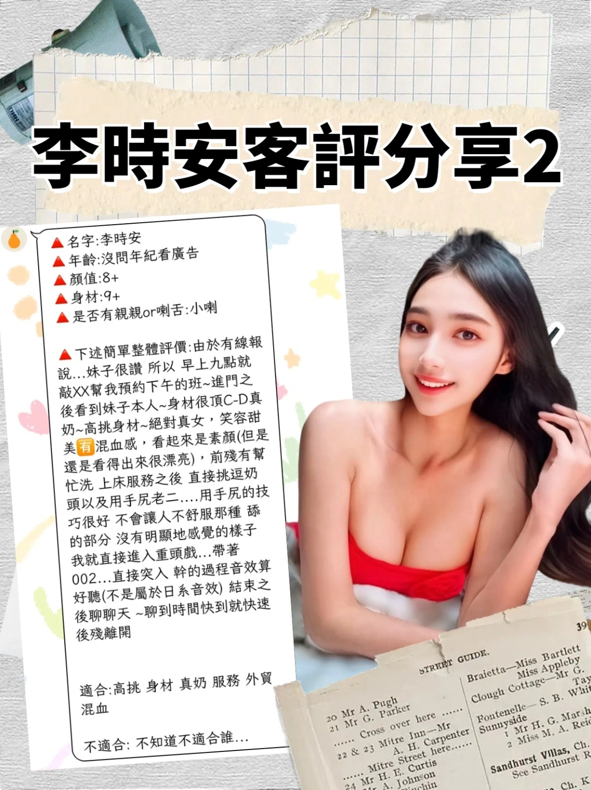 可配合 :奶砲,按摩,69,共浴,LG(舌吻)依氣氛衛生而定,可親嘴,無套吹,品鮑,奶推,絲襪,英文溝通,快餐,2S