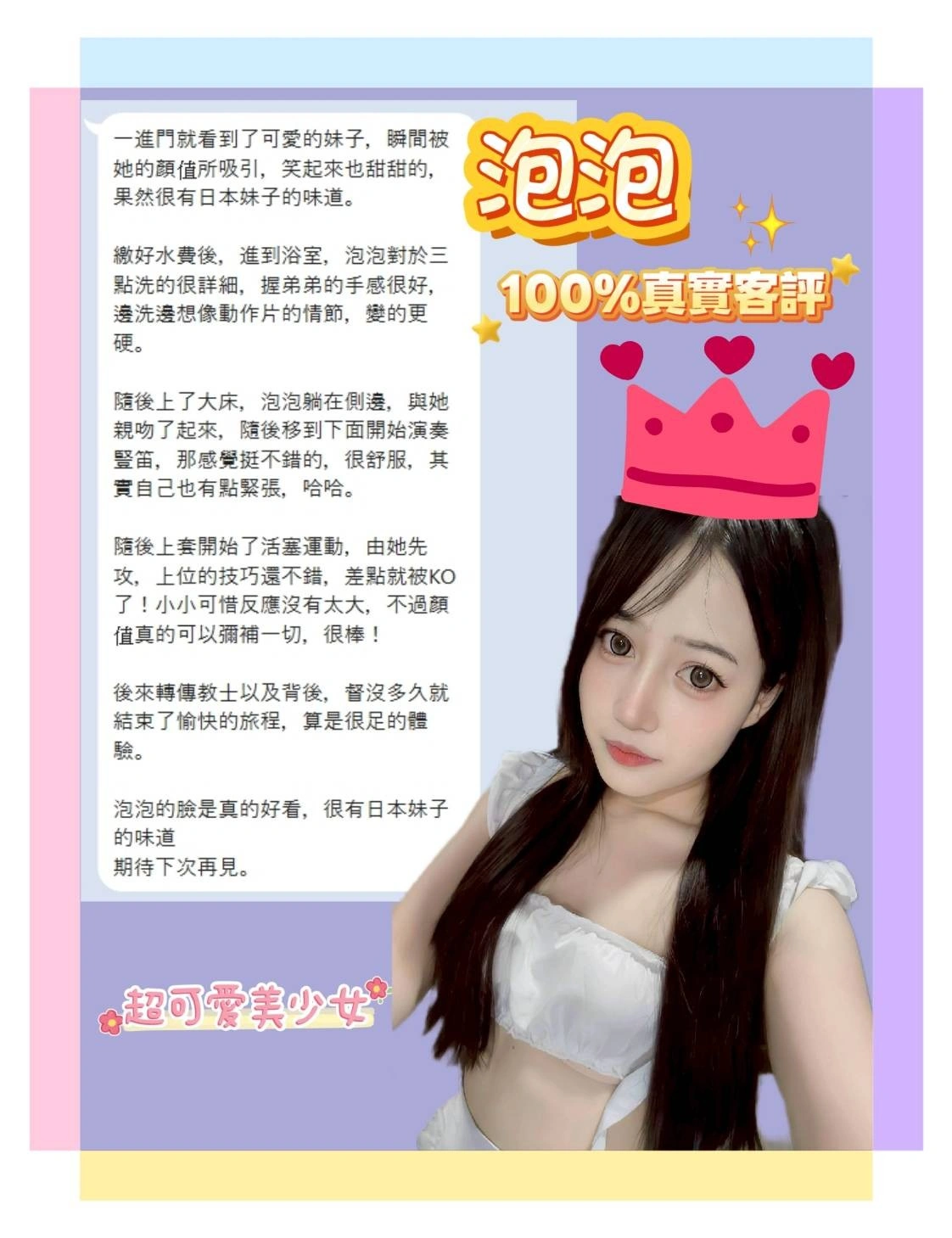 4️⃣見面後確認妹妹滿意後 將現金交給妹妹,即可開始享受服務。
