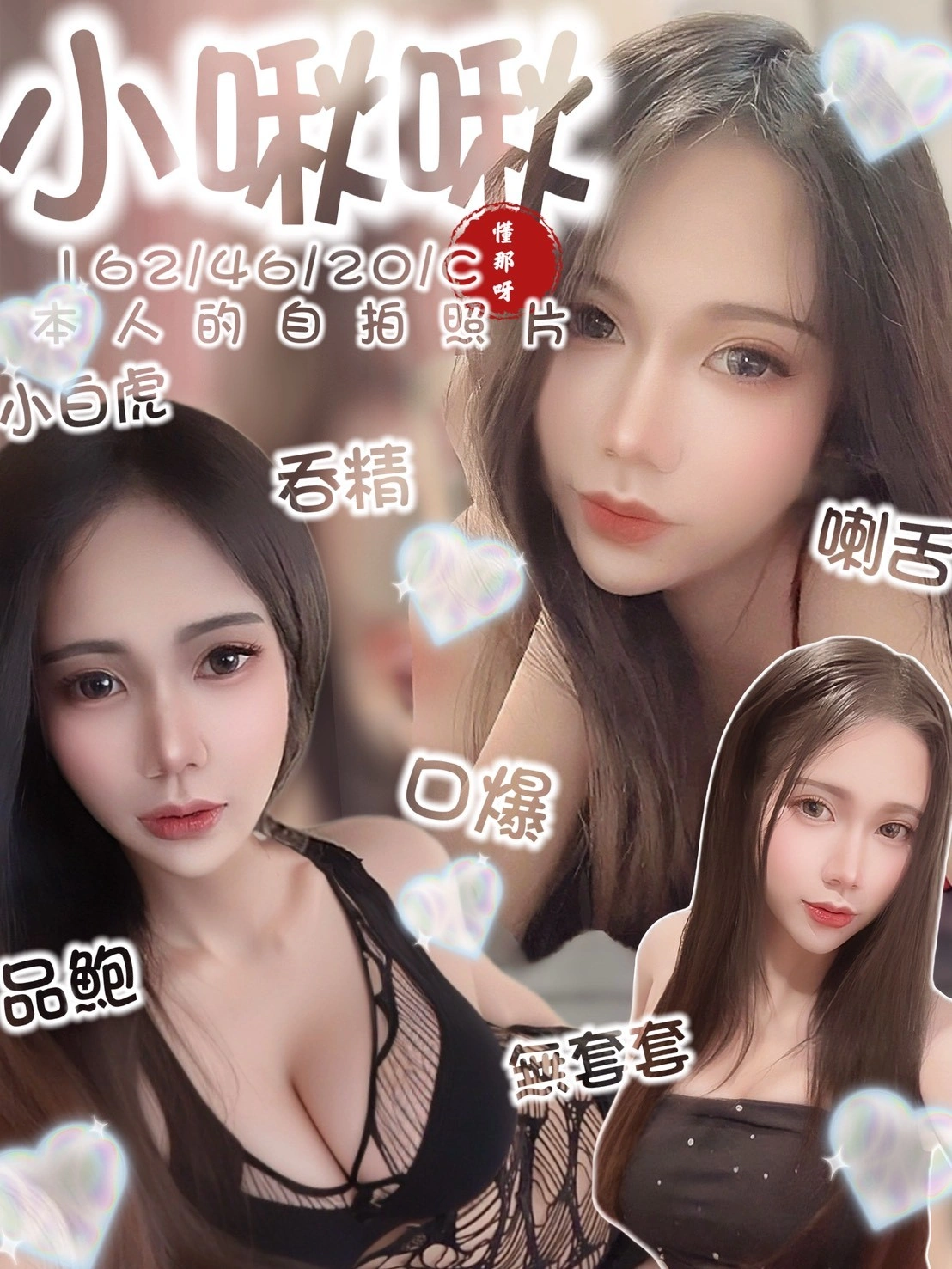 可配合 :奶砲,69,共浴,LG(舌吻)依氣氛衛生而定,可親嘴,無套吹,口爆,吞精,品鮑,奶推,顏射,絲襪,無套做,快餐,2S