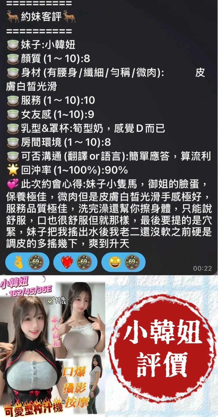 可配合 :毒龍,按摩,69,共浴,LG(舌吻)依氣氛衛生而定,可親嘴,無套吹,品鮑,輕功,奶推,絲襪(自備免付),快餐,2S