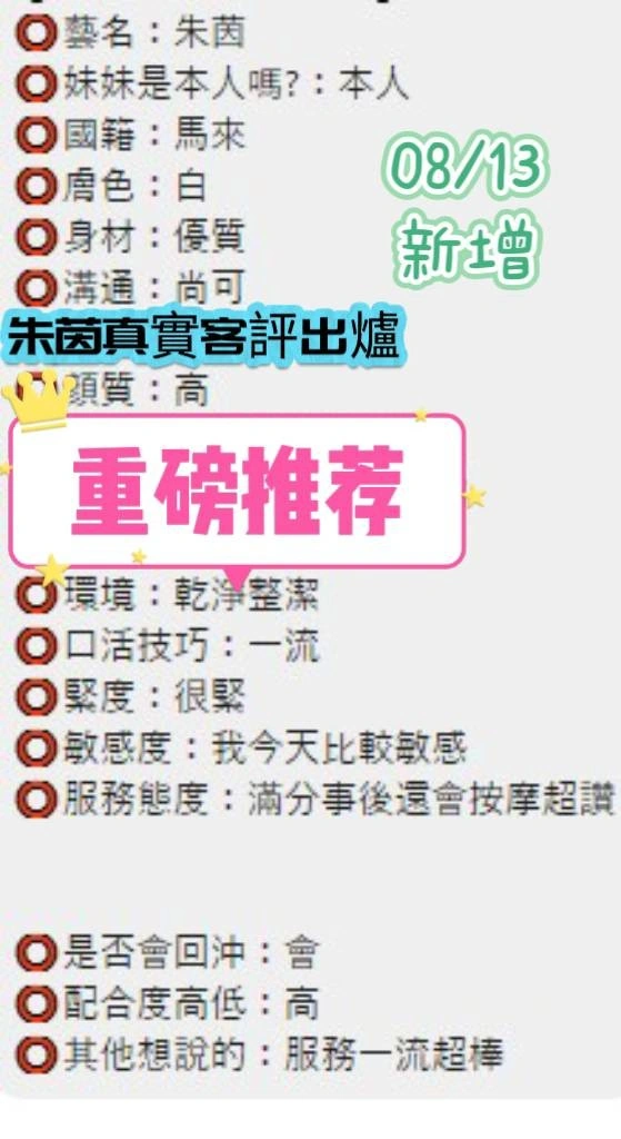 可配合 :奶砲,按摩,69,共浴,LG(舌吻)依氣氛衛生而定,可親嘴,無套吹,口爆,品鮑,舔蛋,奶推,屁推,冰火,絲襪,玩具(按摩棒),玩具(跳蛋),自慰秀,快餐,2S