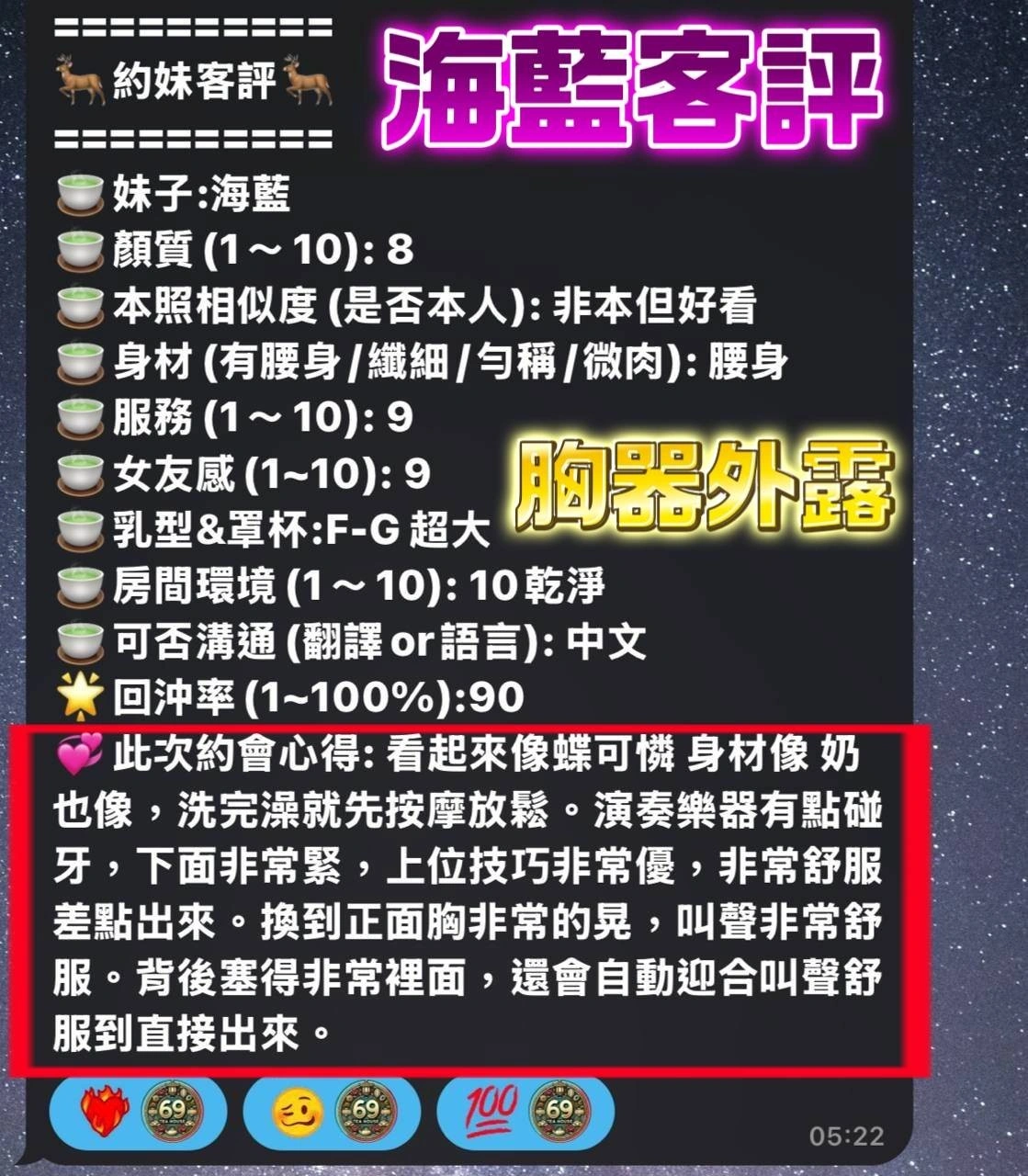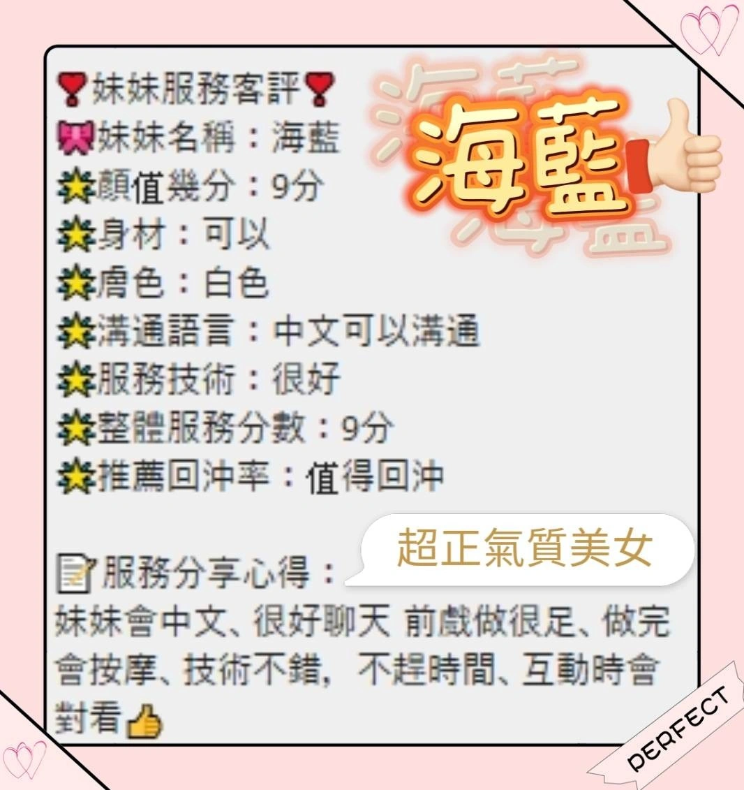 可配合 :奶砲,按摩,69,共浴,LG(舌吻)依氣氛衛生而定,可親嘴,無套吹,口爆,品鮑,舔蛋,輕功,絲襪,中文溝通,快餐,2S