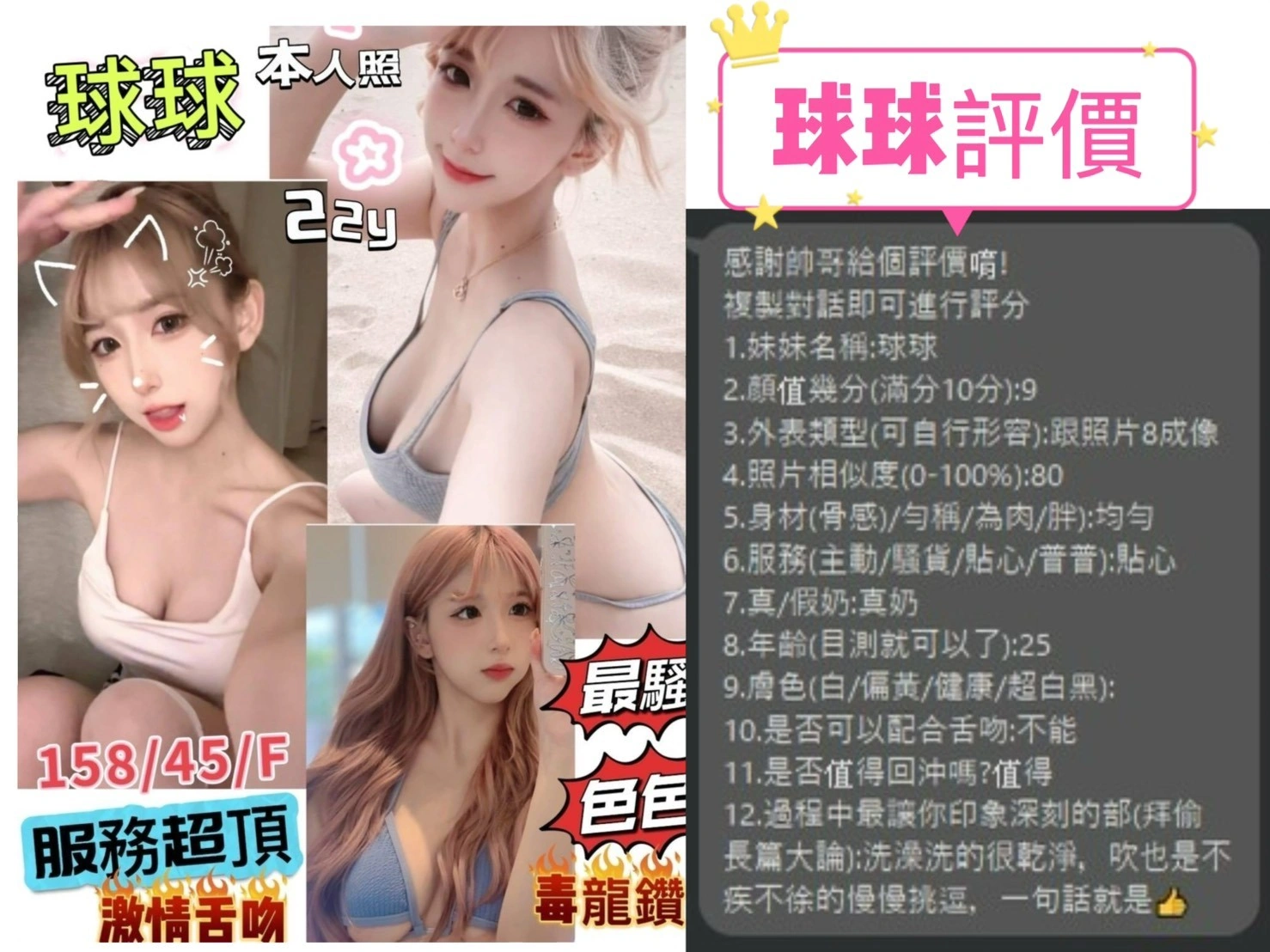 可配合 :奶砲,毒龍,按摩,69,共浴,LG(舌吻)依氣氛衛生而定,可親嘴,無套吹,品鮑,輕功,奶推,顏射,絲襪(自備免付),快餐,2S