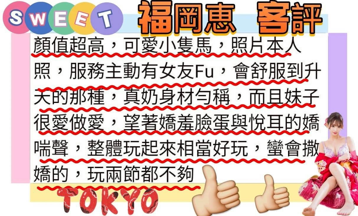 可配合 :69,共浴,可親嘴,無套吹,口爆,吞精,品鮑,顏射,變裝,玩具(按摩棒),玩具(跳蛋),無套做,無套內射,自慰秀,攝影,2S