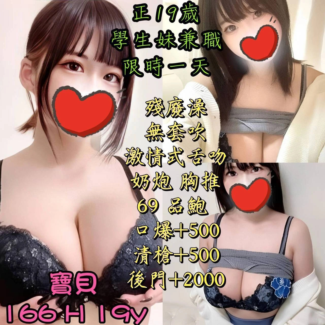 加價項目 : 後門+2000,口爆+500,清槍+500