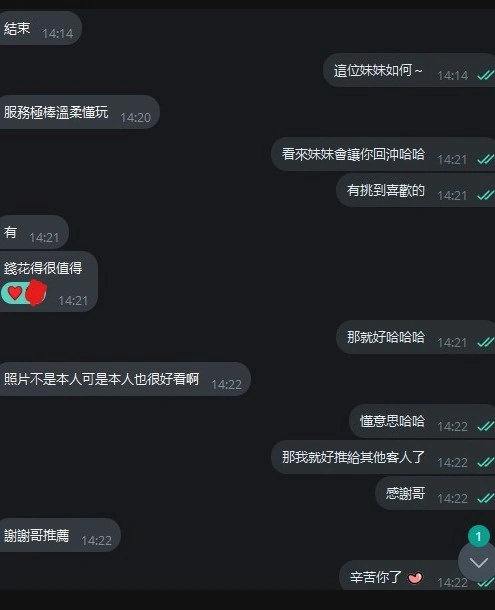 4️⃣見面後確認妹妹滿意後 將現金交給妹妹,即可開始享受服務。