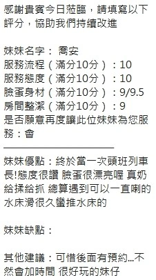 不接受 : 入珠,酒客,毒品,白 人,黑人,陌生客,偷拍,皮膚異常者,性癖好特殊者