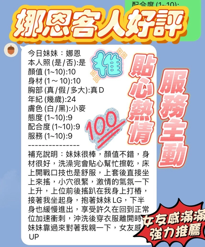 可配合 :奶砲,按摩,69,共浴,LG(舌吻)依氣氛衛生而定,可親嘴,無套吹,口爆,足交,品鮑,舔蛋,奶推,冰火,浴中蕭,變裝(自備免付),絲襪(自備免付),快餐,2S