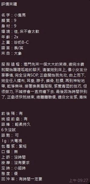 可配合 :奶砲,按摩,69,共浴,LG(舌吻)依氣氛衛生而定,可親嘴,無套吹,口爆,足交,品鮑,舔蛋,顏射,絲襪,玩具(按摩棒),玩具(跳蛋),自慰秀,攝影,快餐,2S,NS