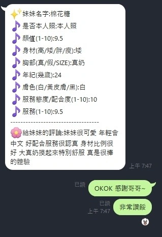 4️⃣見面後確認妹妹滿意後 將現金交給妹妹,即可開始享受服務。