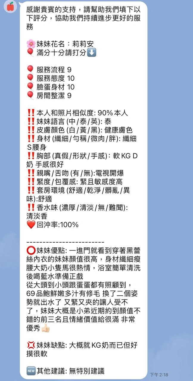 可配合 :奶砲,按摩,69,LG(舌吻)依氣氛衛生而定,可親嘴,口爆,品鮑,舔蛋,奶推,屁推,冰火,顏射,變裝(自備免付),絲襪(自備免付),自慰秀,英文溝通,快餐,2S
