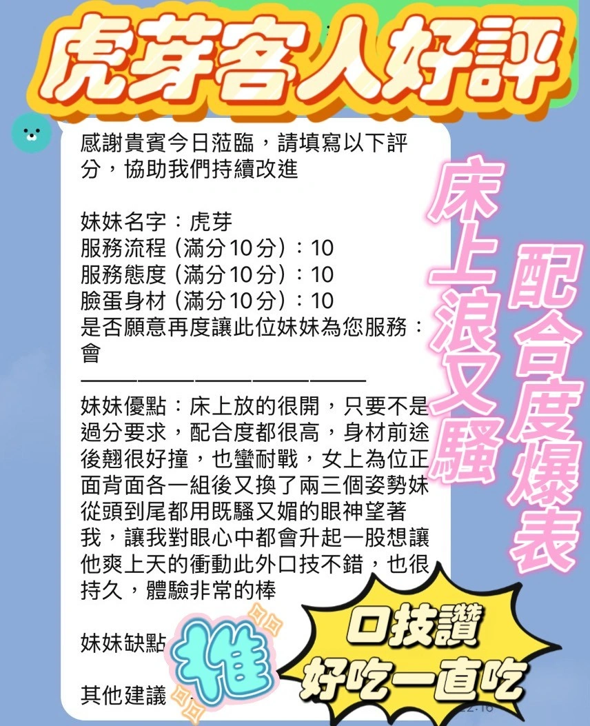 可配合 :奶砲,毒龍,按摩,69,共浴,帝王浴,LG(舌吻)依氣氛衛生而定,可親嘴,無套吹,口爆,品鮑,舔蛋,奶推,冰火,浴中蕭,艷舞秀,變裝(自備免付),絲襪(自備免付),快餐,2S
