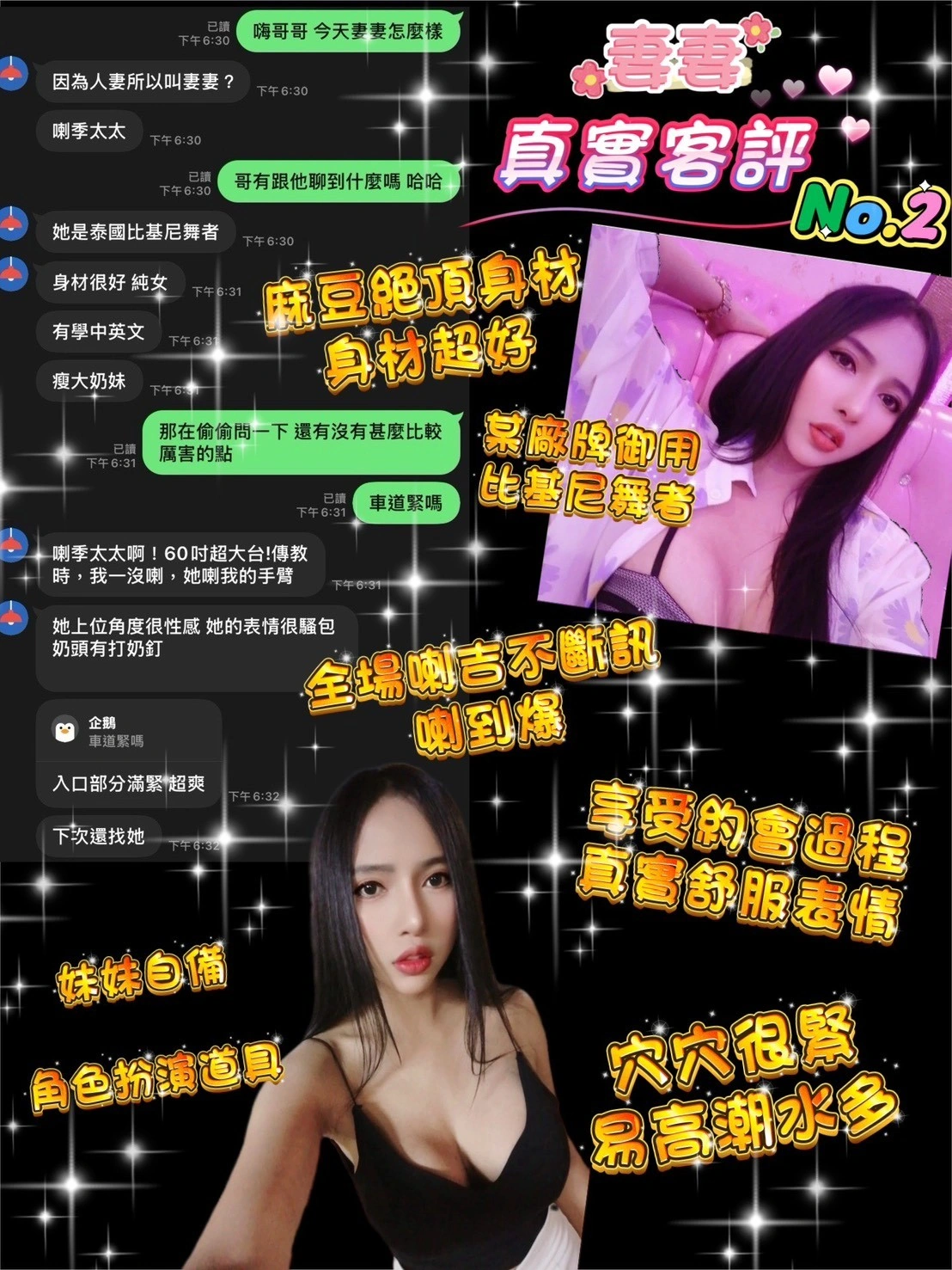 可配合 :奶砲,69,共浴,LG(舌吻)依氣氛衛生而定,可親嘴,無套吹,品鮑,舔蛋,奶推,艷舞秀,絲襪,快餐,2S