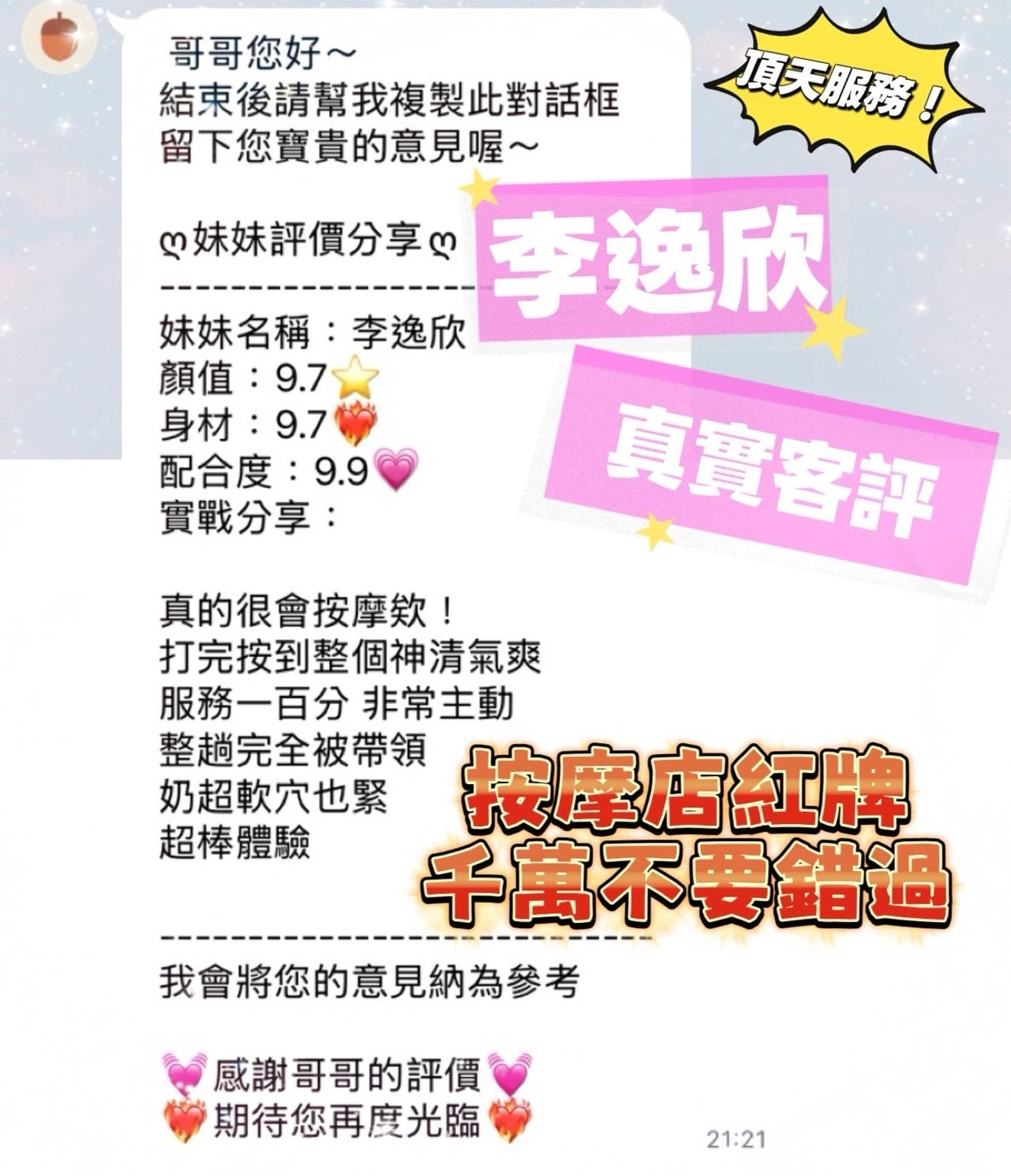 4️⃣見面後確認妹妹滿意後 將現金交給妹妹,即可開始享受服務。