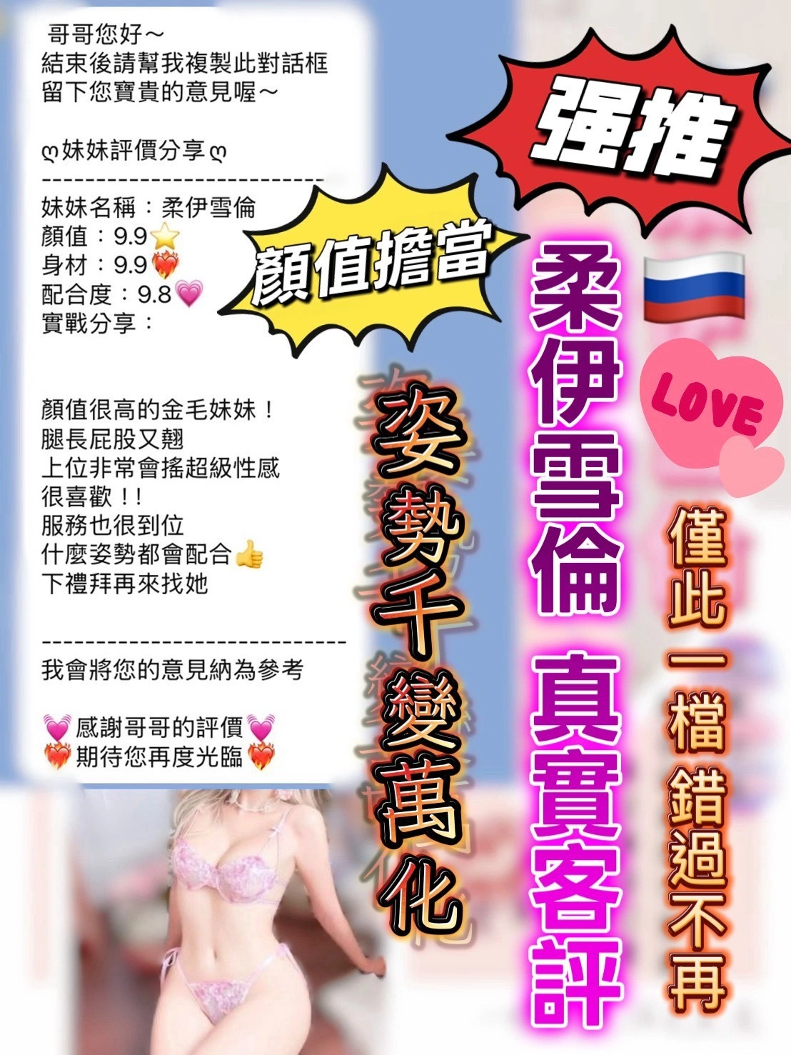 國别:俄羅斯妹 年齡:22 身高:170