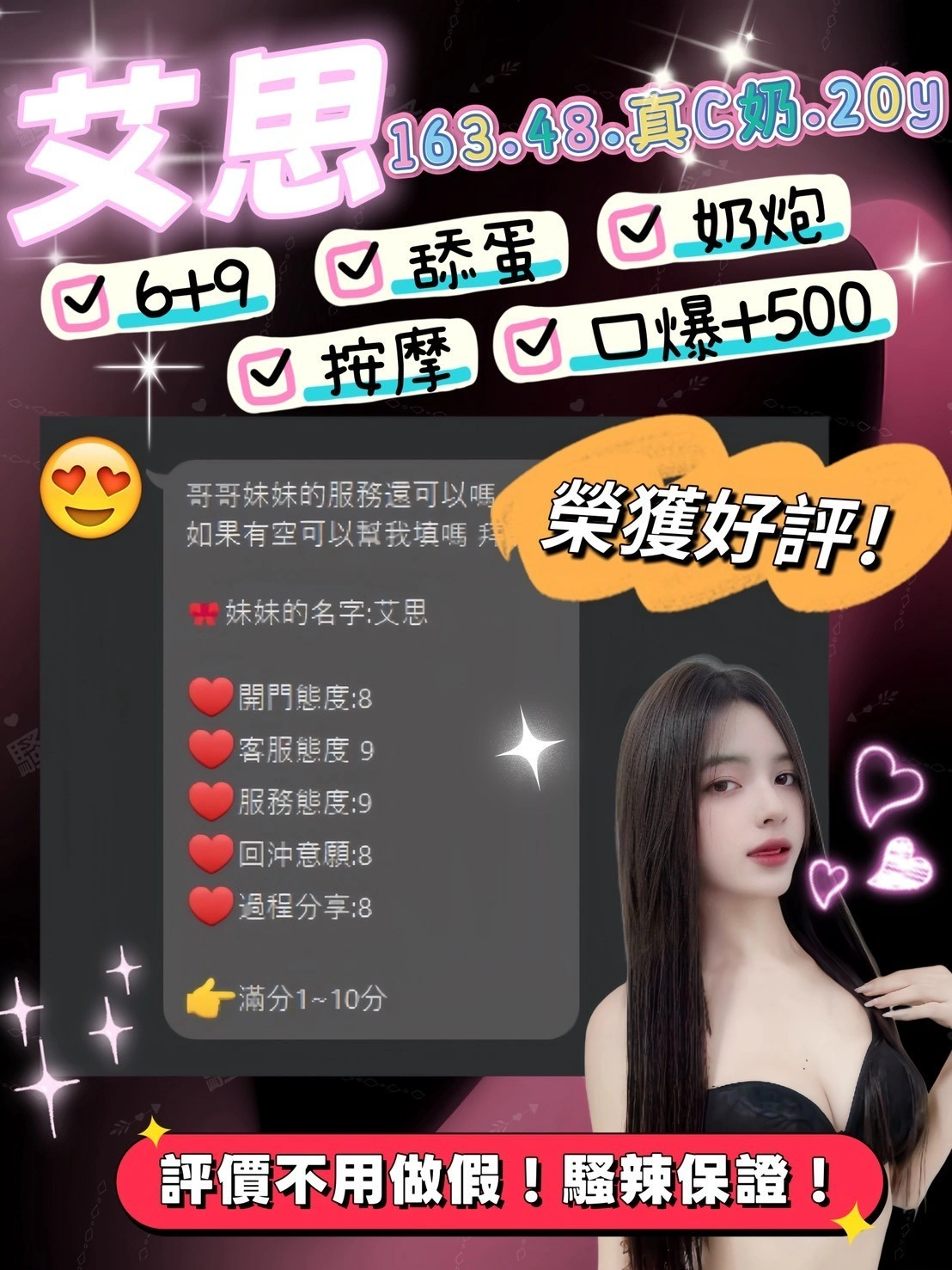 可配合 :按摩,69,共浴,可親嘴,無套吹,口爆,品鮑,舔蛋,絲襪,快餐,2S