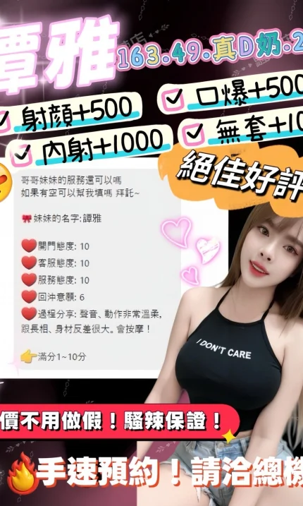 可配合 :奶砲,按摩,69,殘廢澡,LG(舌吻)依氣氛衛生而定,可親嘴,無套吹,品鮑,過水,漫遊,奶推,屁推,冰火,絲襪,自慰秀,快餐,2S