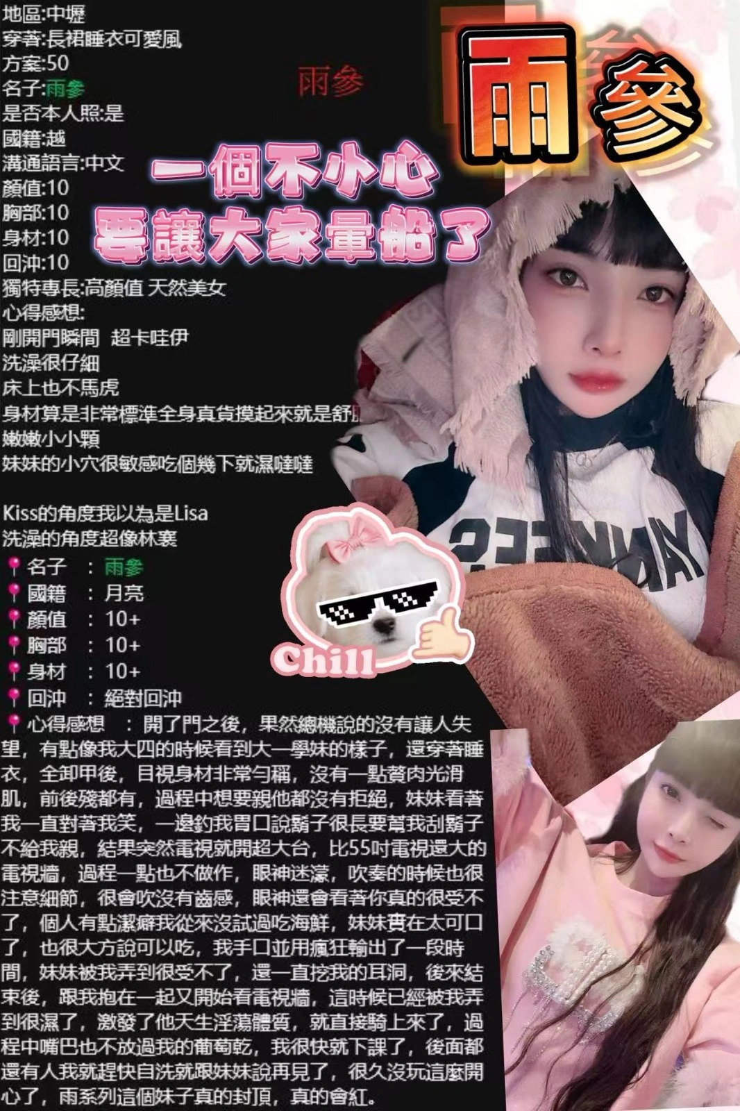 可配合 :按摩,69,共浴,LG(舌吻)依氣氛衛生而定,可親嘴,無套吹,品鮑,舔蛋,絲襪,中文溝通,快餐,NS