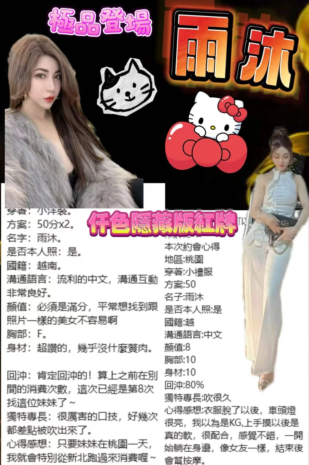 可配合 :奶砲,按摩,69,共浴,LG(舌吻)依氣氛衛生而定,可親嘴,無套吹,口爆,品鮑,舔蛋,奶推,浴中蕭,深喉嚨,變裝(自備免付),絲襪,攝影,中文溝通,快餐,NS,包夜