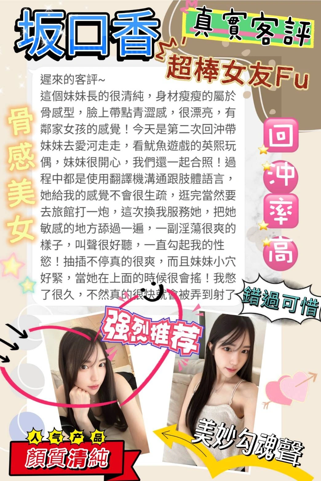 答:不可以哦,因為妹妹都是兼職的,在我們這般約她我們能保證在第一時間保護雙方的安全。如果加聯絡方式自己約,出現任何經濟糾紛與我們無關(有真實案例),請重視!!!
