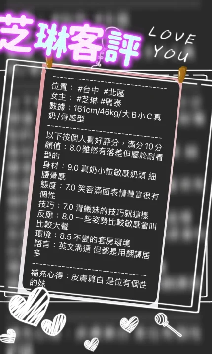 加價項目 : 2S+500,顏射+500,口爆+500,自慰秀+500,無套內射+1000