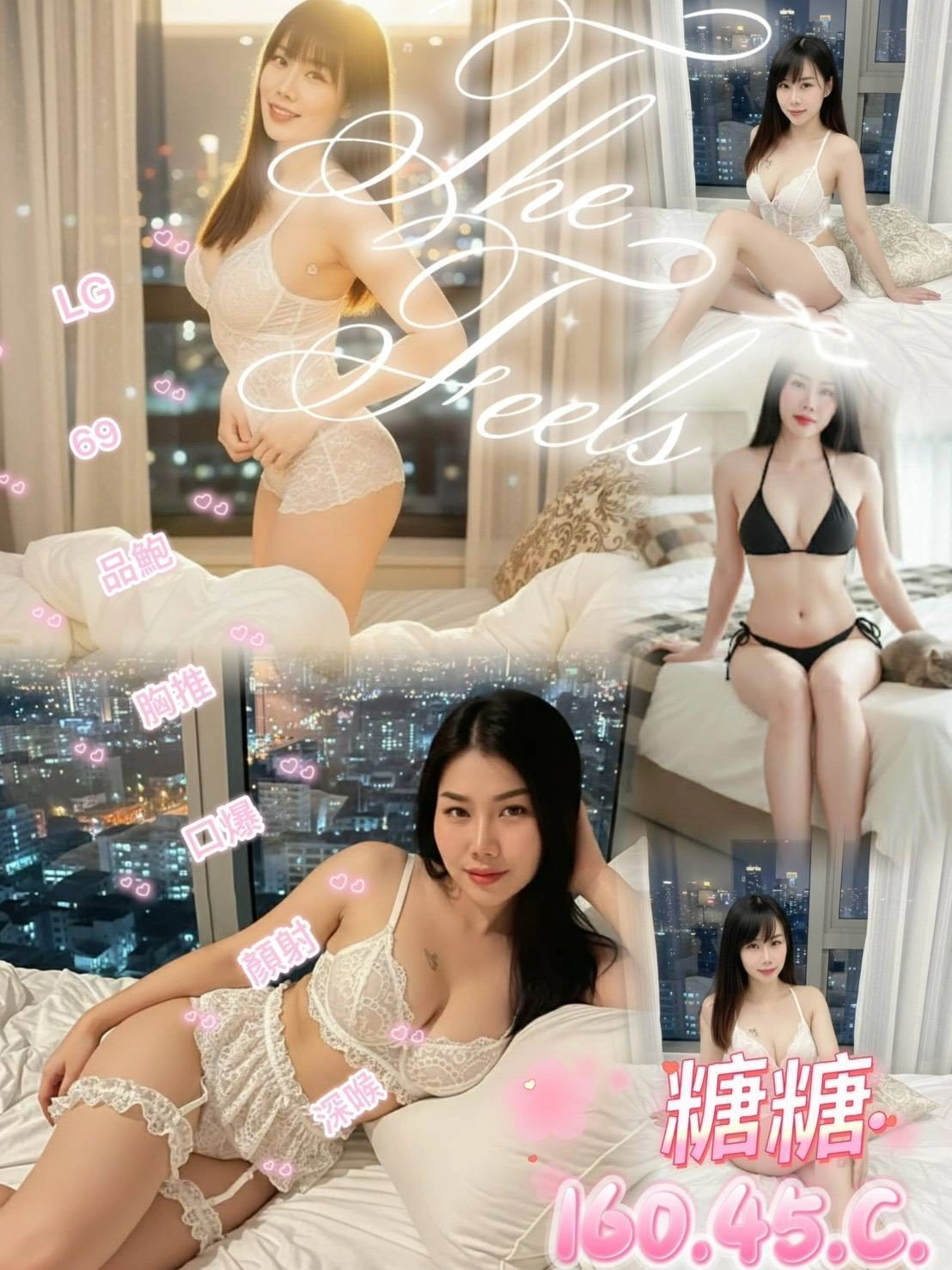 可配合 :按摩,69,共浴,可親嘴,無套吹,口爆,吞精,品鮑,奶推,屁推,絲襪(自備免付),無套做,後門,自慰秀,快餐,2S