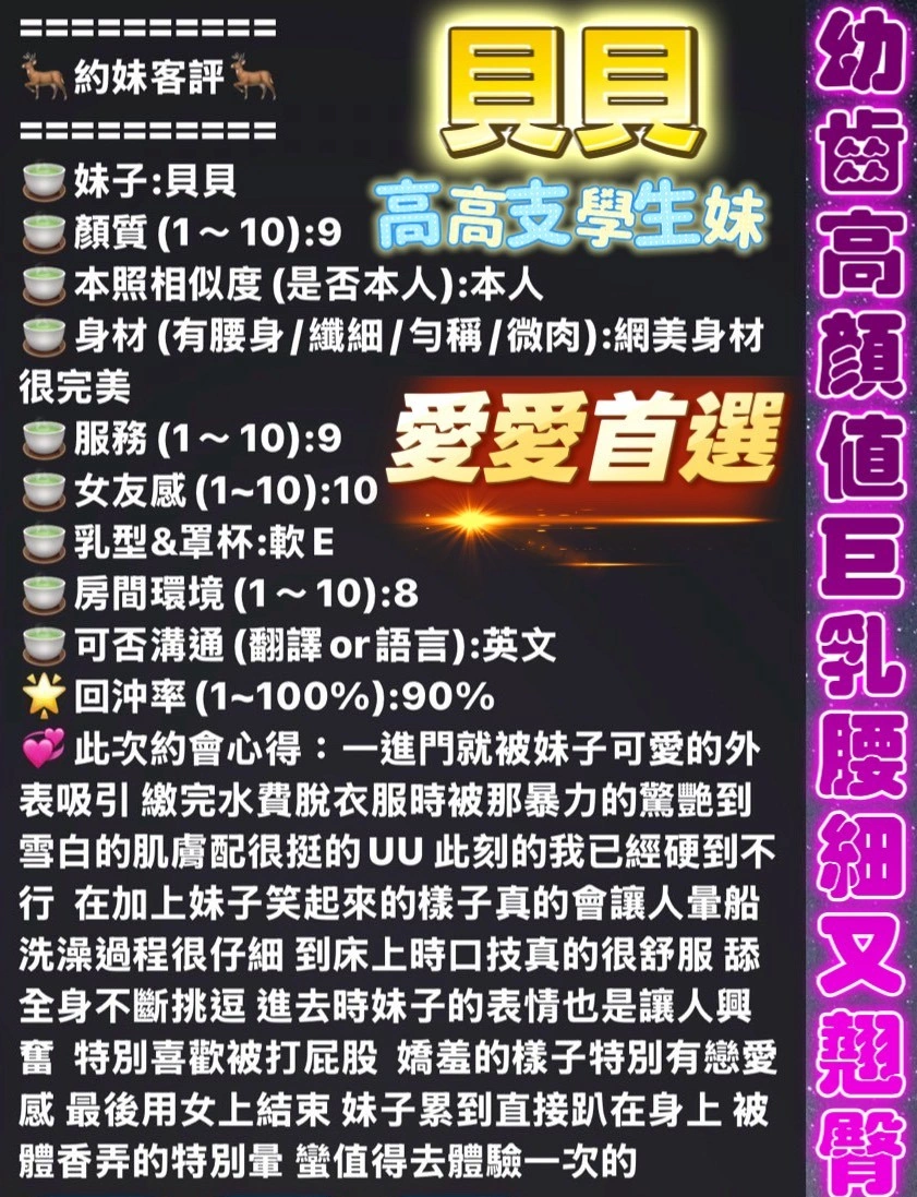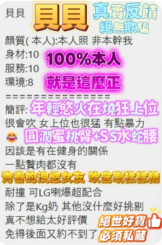 可配合 :奶砲,按摩,69,殘廢澡,LG(舌吻)依氣氛衛生而定,可親嘴,無套吹,品鮑,舔蛋,奶推,顏射,浴中蕭,深喉嚨,變裝(自備免付),絲襪(自備免付),快餐,2S