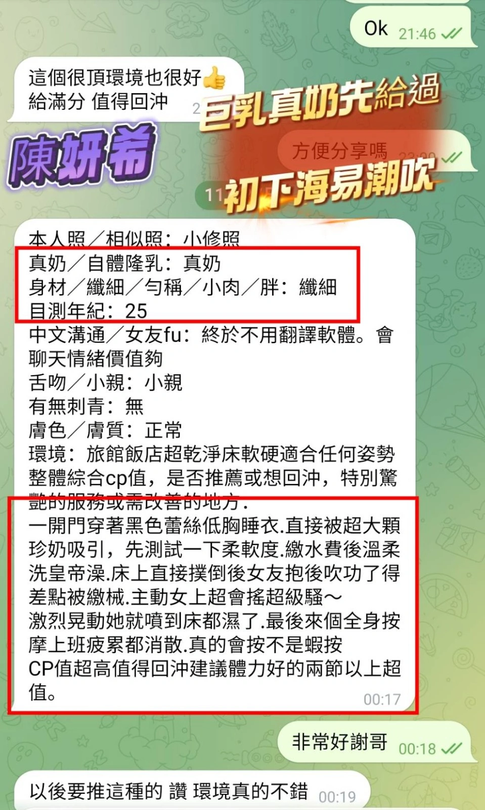 4️⃣見面後確認妹妹滿意後 將現金交給妹妹,即可開始享受服務。